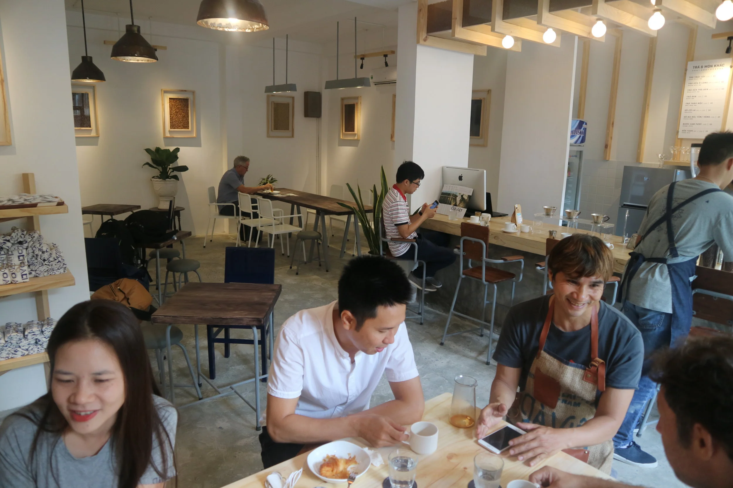 La Viet's staff execute the espresso and pour over bar with care and pride as well, hosting a broad menu of coffee styles while leading with a quality focus. A row of Kalita Wave drippers sit alongside a row of Vietnamese traditional phín drippers, creating a context and visual bridge between the familiar and the new. Leading the barista and customer support team is national barista championship finalist (2nd place in 2018, and perennial finalist) Linh Thuy, who is also affiliated with The Workshop Specialty Coffee.