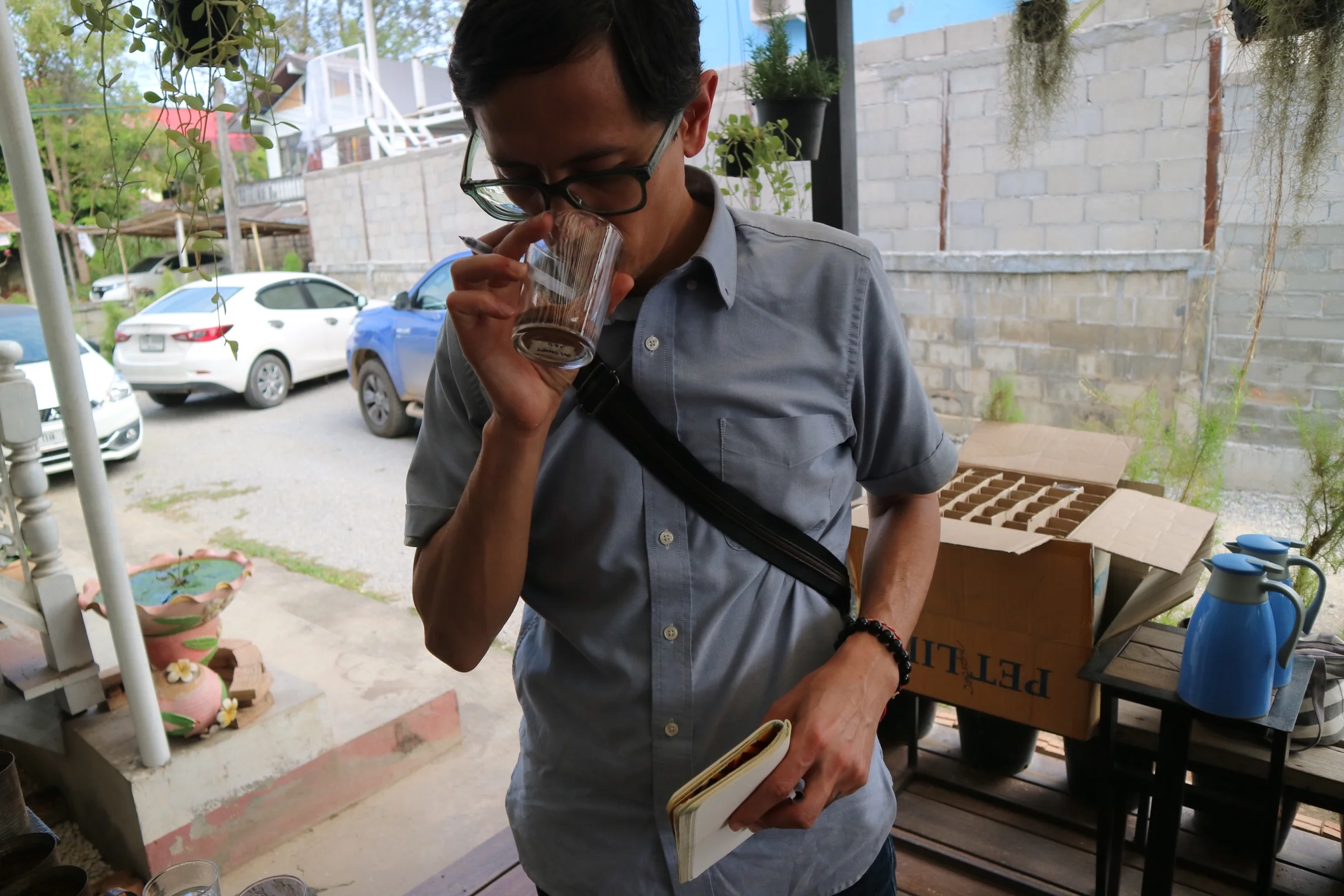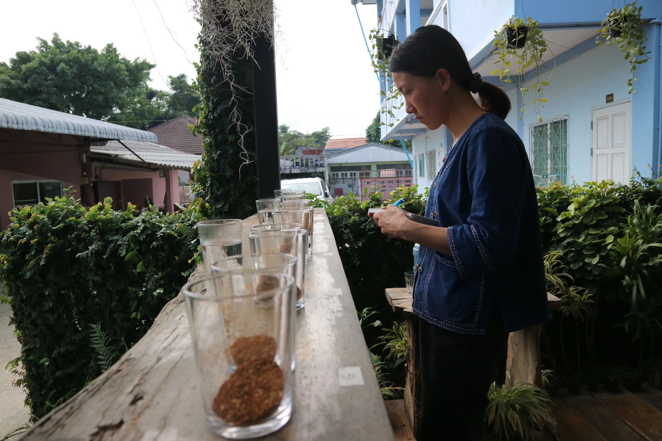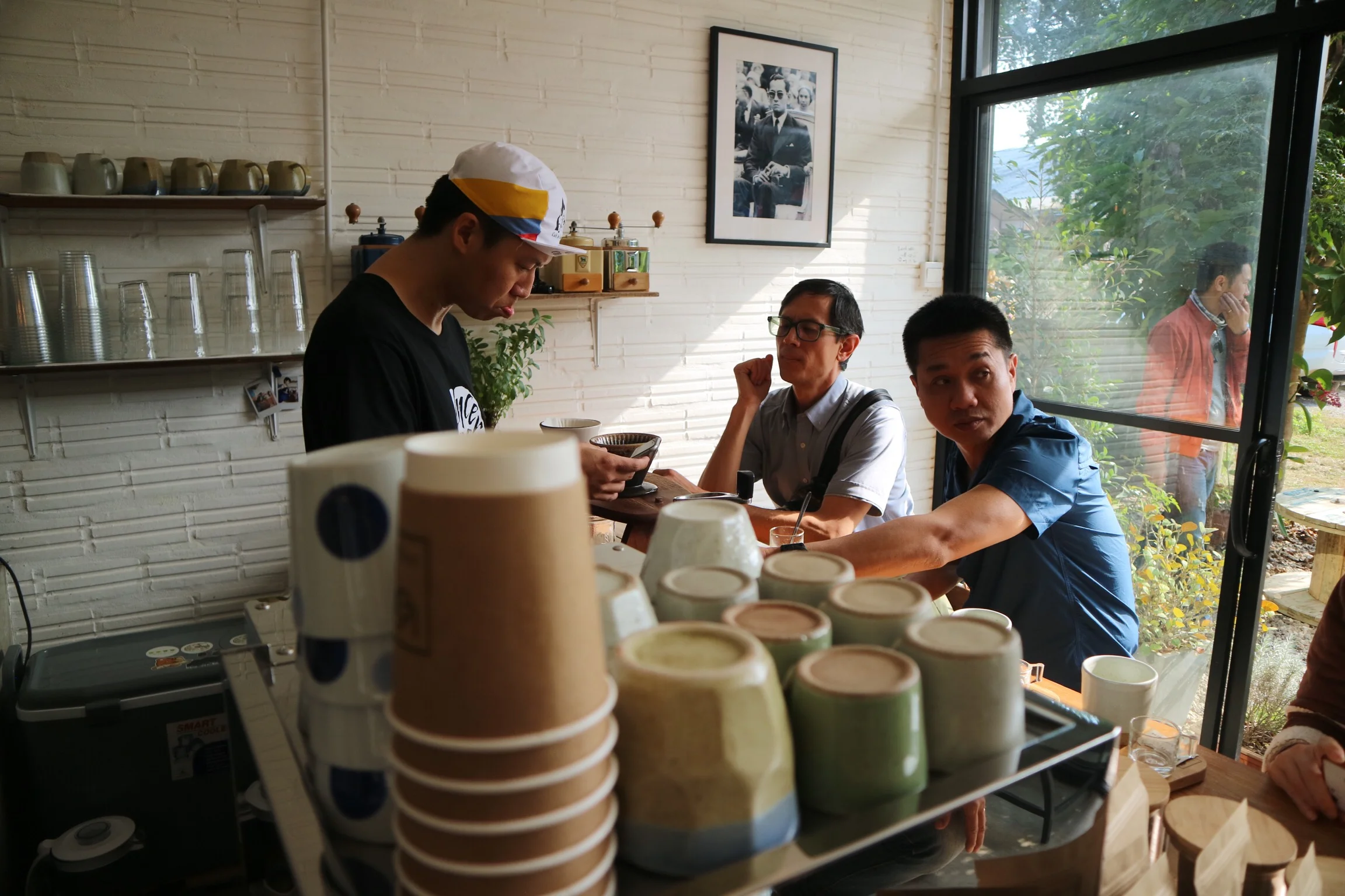Next, the Beanspire crew put together a cupping to give us a glimpse of the region’s offerings - some examples of coffees from Doi Pangkhon, Doi Saket, Khun Lao, and Nan - on the lovely patio at Saturday Cafe in Chiang Rai. Many thanks to Pen-tai for lending us your space!
